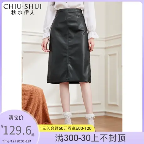 秋水伊人高腰皮质半身裙2021年冬季新款女装时髦质感中长款伞裙子