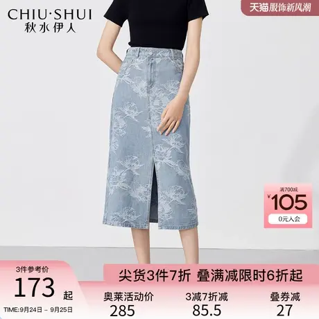 秋水伊人高腰A字牛仔半身裙2023夏季新款女装设计感开叉裙子