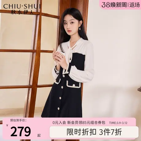 秋水伊人收腰显瘦蝴蝶结经典小黑裙2023年秋季新款女装设计感裙子