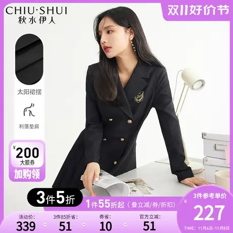 秋水伊人气质连衣裙2023秋冬新款女装双排扣高级感黑色修身西装裙