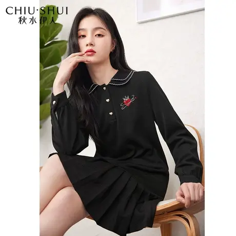 秋水伊人复古法式修身连衣裙2023秋季新款小翻领高级感别致小黑裙